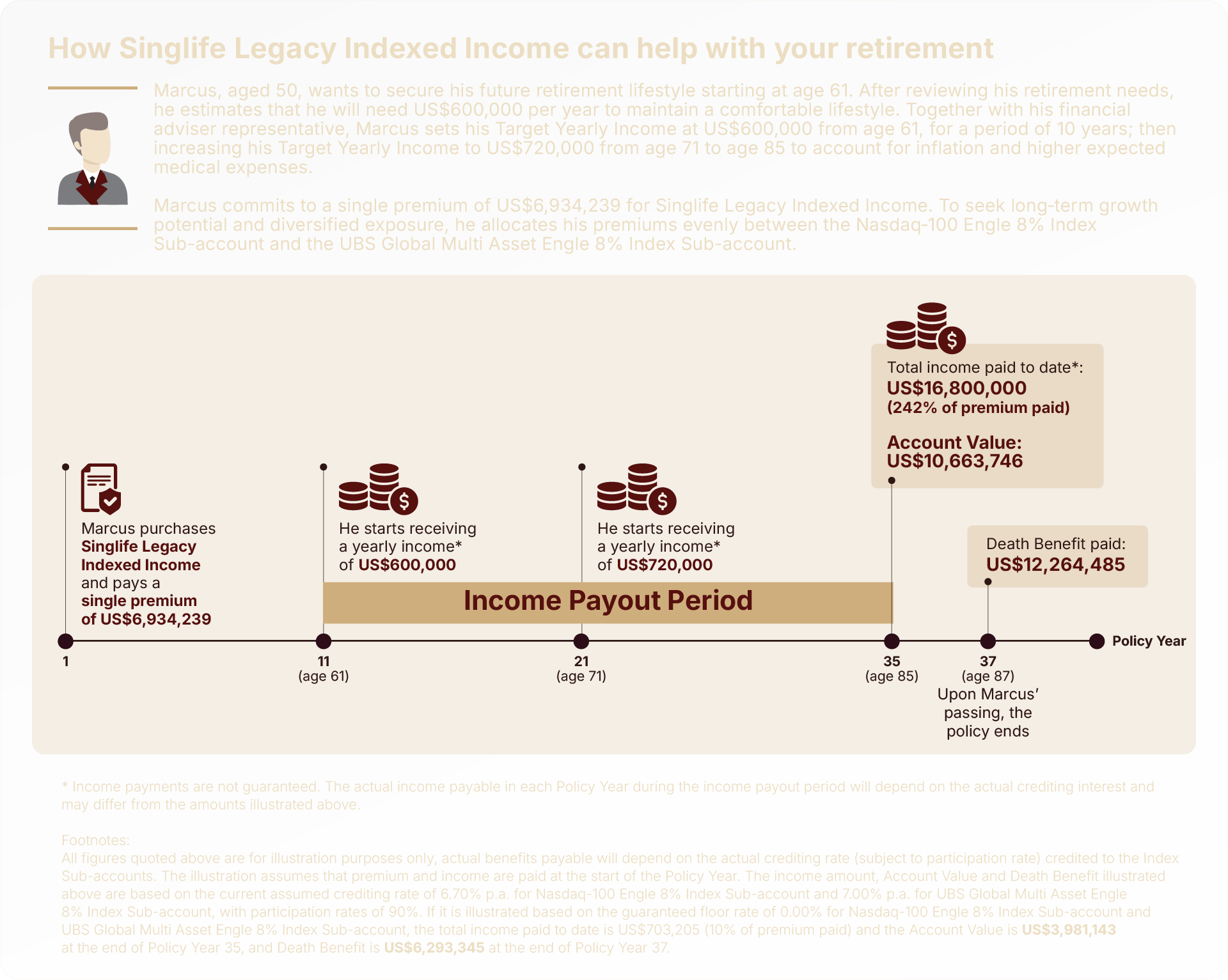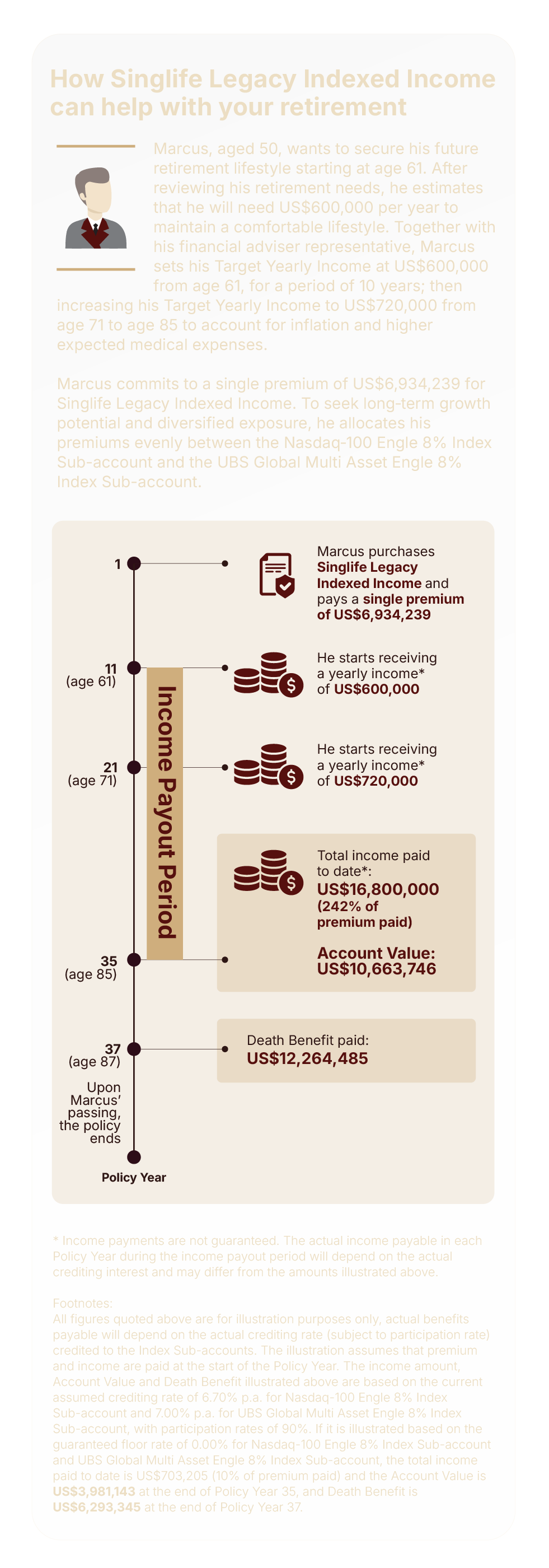 For retirement and income needs across different stages of life, Singlife Legacy Indexed Income offers flexibility aligned to your changing priorities.
